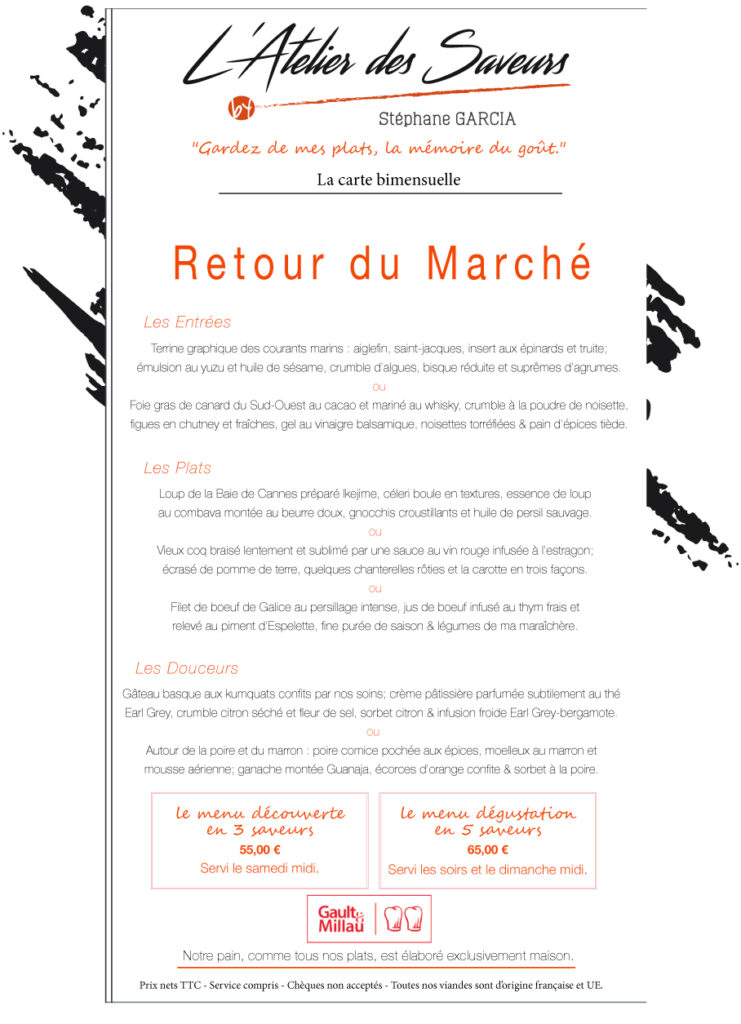 La Colle-sur-Loup, la vie est ponctuée de premières rencontres, aujourd’hui, à l’Atelier, la vôtre. Stéphane GARCIA a partagé son enfance entre Occitanie et Pays basque deux terres d’abondance, de caractères, qui lui ont donné le sens et le goût des plaisirs partagés de la table.