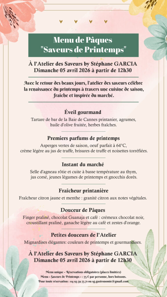 Le retour des beaux jours annonce une renaissance des sens. Pour célébrer cette saison de lumière et de gourmandise, Stéphane GARCIA vous invite à une escale culinaire d’exception le dimanche 05 avril 2026.